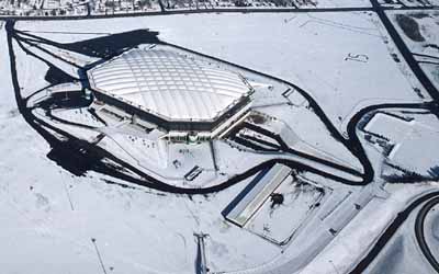 The Pontiac Silverdome "Home Sweet Home" for the Detroit Lions. During the past 20 years, the building has earned a reputation as one of the finest sports facilities in the world. The Silverdome has the largest seating capacity (at 80,368) among NFL stadiums. The air-supported and cable-restrained facility is the largest of its kind in the world and is the first successful example of a fiberglass fabric roof system. The Silverdome was built at a cost of $55.7 million. |